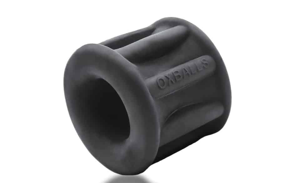 OXBALLS BALLER rib-stretch NIGHT EDITION max-tall ball stretcherin our lush rubbery SILSOFT SILICONE blend and a smooth,velvet-black color. This is a softer, squishier formula forthe hardest and darkest of play.BALLER soft stretchy blubbery hourglass-curving ballstretcher with eight super-stretch outer ribs for max push-down stretch, ataller ballstretcher for lower-hanging sacks—the rubbery ribs keep the squeeze down-low, so itfeels like grippy tugging thelength of your sack.