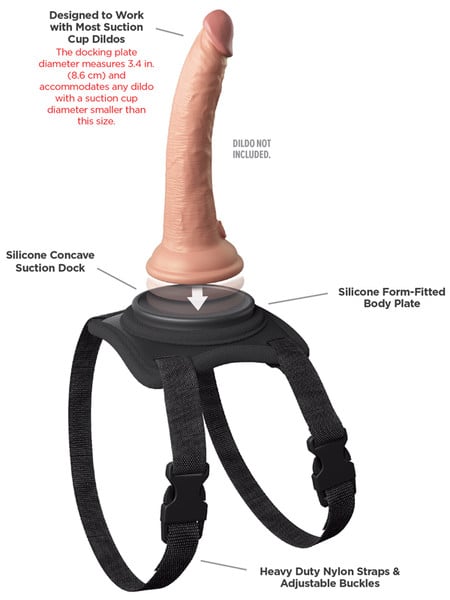 Everybody loves a good lap dance, but don’t you wish you could take it further sometimes? Well, now you can with the patented Body Dock® Lap Strap! It features a premium silicone docking plate and adjustable side-release buckles, so you can comfortably wear it around your leg/thigh while your partner gives you the sexiest lap dance ever. Changing your favorite strap-on accessory has never been faster or easier! It’s as simple as attaching the suction cup on your favorite dildo or vibrator to the docking plate, while the nylon straps easily adjust to fit most sizes and body types. Best of all, it works with most dildos on the market today, including some you may already own. No rings. No snaps. No hassle!