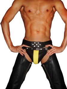 Our chaps are designed to ride high in your inner crotch for added definition of your arse. These do to your butt what a push up bra does to women’s tits!! With an inside zip that fully releases; a dual buckle and clip up front and adjustable eyelet/tie back these chaps will move to an ever-changing body shape (within certain bounds!). They feature a D Ring on each side and we make a special wallet that attaches to these rings for going out! They are by far the horniest addition to any leather person’s armoury and seem to turn people on more than any other item!