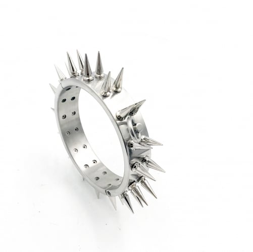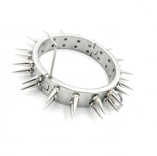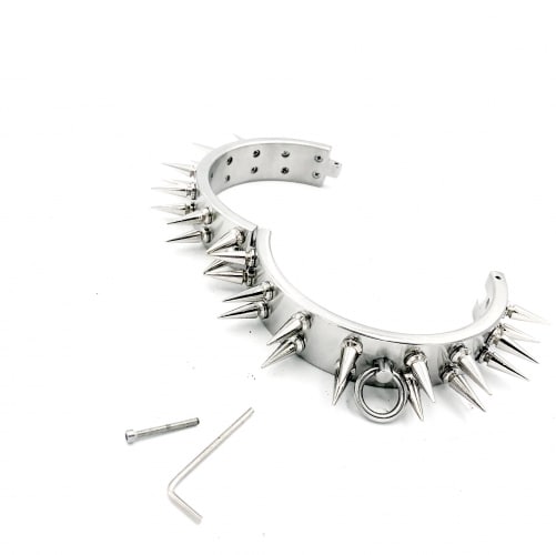 Make a statement with this heavy stainless steel collar with double spikes and O ring.