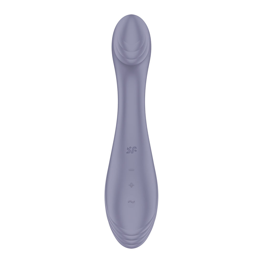 Experience ultimate joy with the Satisfyer G-Force, the expert in G-spot stimulation. Get ready for pure delight with a uniquely grooved, flattened tip and 50 strong and amazing vibration combinations. Whether you’re a newcomer to G-spot pleasure or a seasoned pro, this silicone marvel is perfect for everyone. Its ergonomic shape guarantees a comfortable grip, while the 10 different vibration patterns and 5 intensities cater to your every desire. The smooth surface and pointed tip ensure easy insertion, and a touch of water-based lubricant can take it to the next level. Reach your G-spot easily with the curved shape, while the delicate grooves on the shaft add an extra thrill. You can even use the flattened tip as a lay-on vibrator for clitoral pleasure!