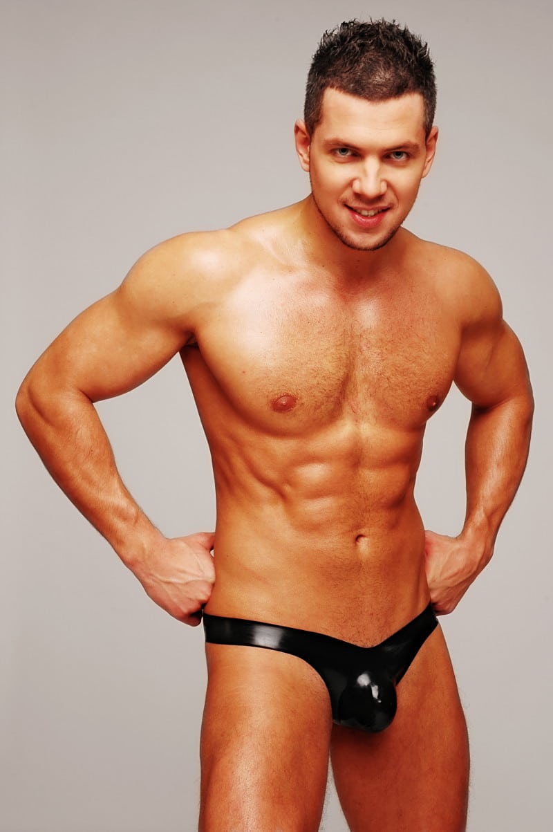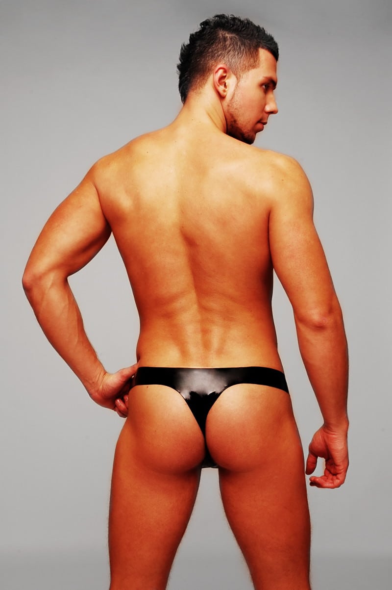 This thong made of anatomically dipped latex is a real sexy eye-catcher with its refined cut and the very accentuating bulge for your masculinity.