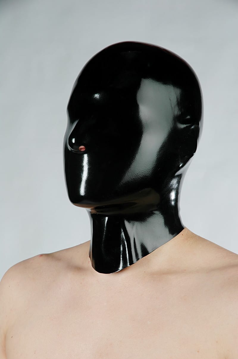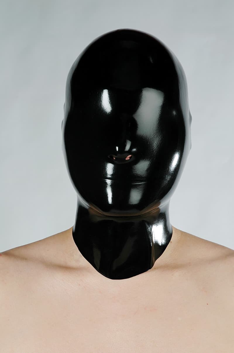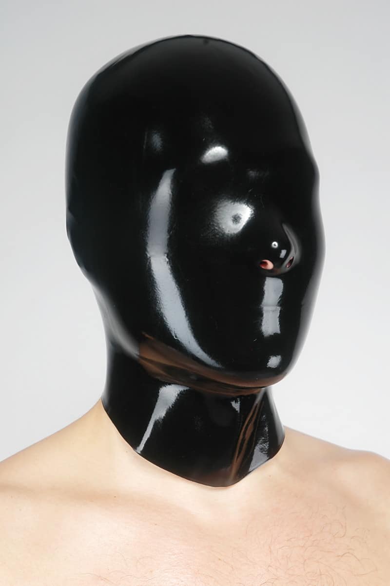 This anatomically dipped hood made of latex is completely closed except for two small round nostrils and encloses your head perfectly. The hood has a slightly longer neck and is characterized by a very good fit.