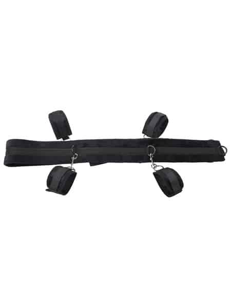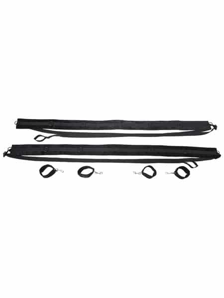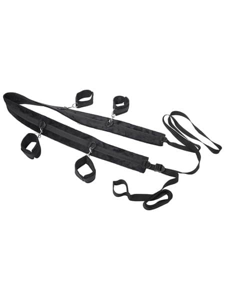 Give your partner total control as you position yourself spread and restrained against the bed, or take your play to new heights by adjusting the straps to fit snugly against the door for standing bondage and tantalizing teasing. The possibilities are endless with the nearly 10’ of adjustable straps to tether your partner to anything you can imagine for the most erotic predicaments. Four included cuffs will keep them right where you want them in any position you like with the 6 D Ring connectors per strap stretched across 5’ of padded webbing.