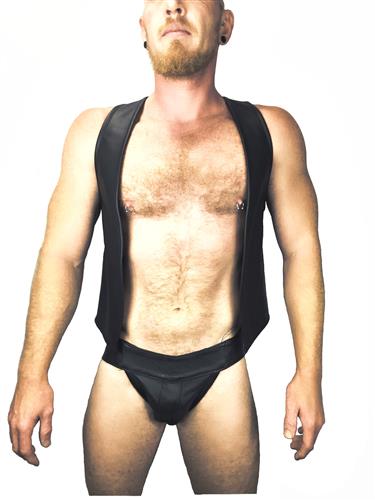 Made to sit on the belt line and open at the front, it’s perfect to show off your chest, a harness, or a kinky T shirt underneath.