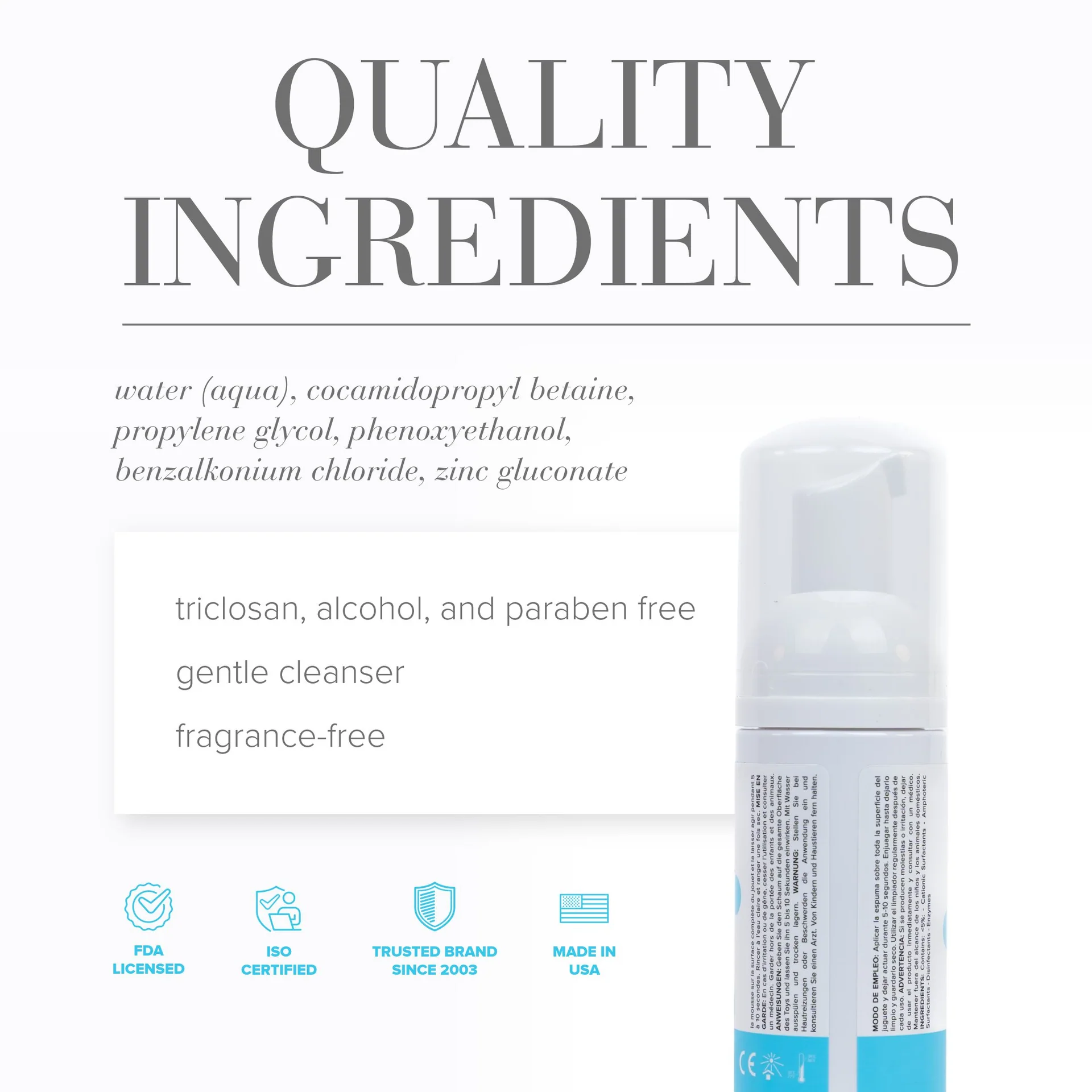 - Â Paraben, Alcohol, & Triclosan-Free