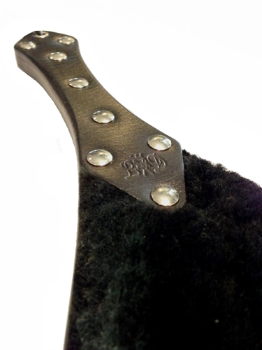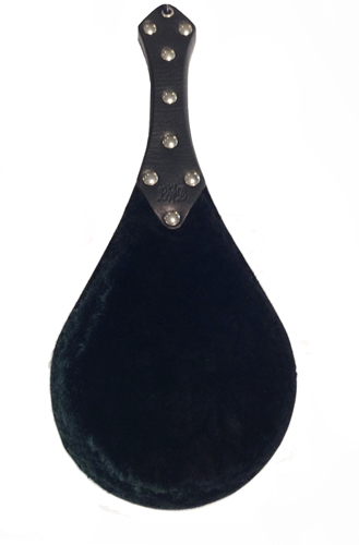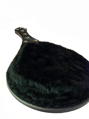 On one side of this paddle is hard leather and on the other is a lush velvety fur. Hard and soft, nice and nasty; the best of both worlds. Crafted by Lucrezia and De sade