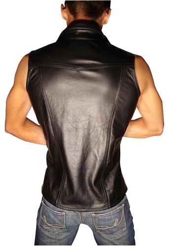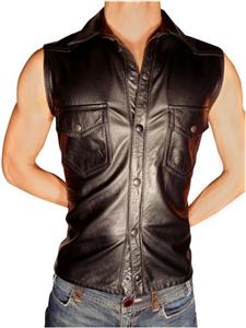 Made with our finest leather; this shirt has no sleeves with a press-studded front. Military style pockets and pleats these shirts make it a commanding addition to your leather armoury!.
