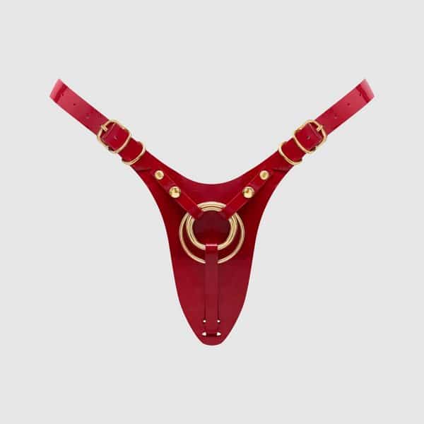Every detail has been carefully crafted to make this harness a collector’s piece: its minimalist thong back subtly highlights the buttocks, while the glossy patent-effect finish gives it a distinctly couture feel.