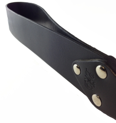 Made from a fold of high quality thick leather, The Strapper is an impressive and handsome looking percussion tool. The handcrafted leather handle finishes the design off nicely, while allowing the user to have greater control over the impact this toy will make. Hard or soft, its your choice. Measures approx 48cm by 4.5cm.