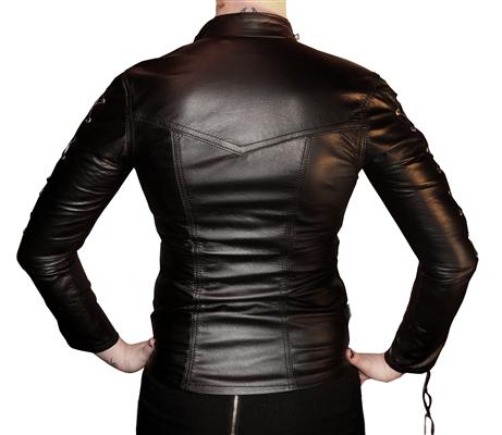 Our Matrix top is made from gorgeous nappa leather. It has clean, minimal design & collar with a front zip and full sleeves with laced sides.